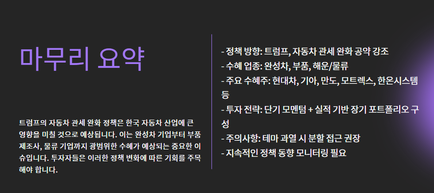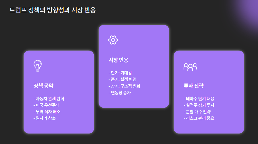 | 정책 방향 | 트럼프, 자동차 관세 완화 공약 강조 |