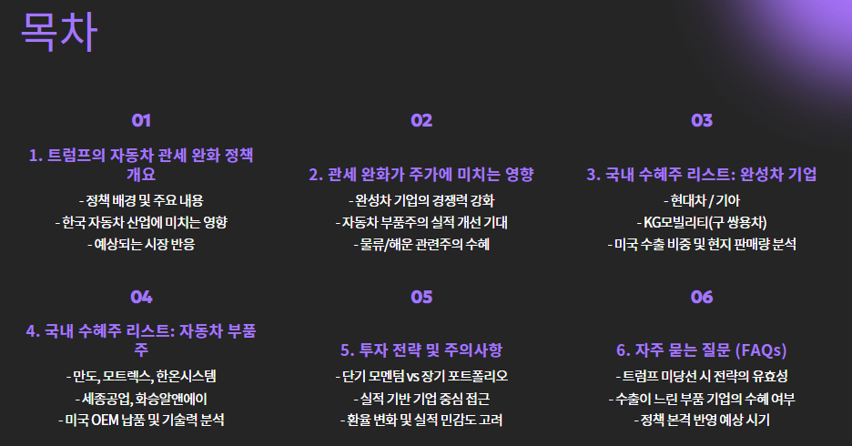 그와 동시에 다시 주목받고 있는 게 바로 자동차 관세 완화 정책입니다.
