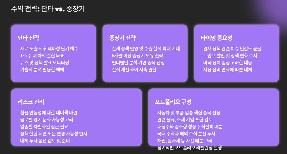 TIP: 관세 정책 관련 이슈는 "발언"만으로도 단기 주가를 흔드는 경우 많으므로