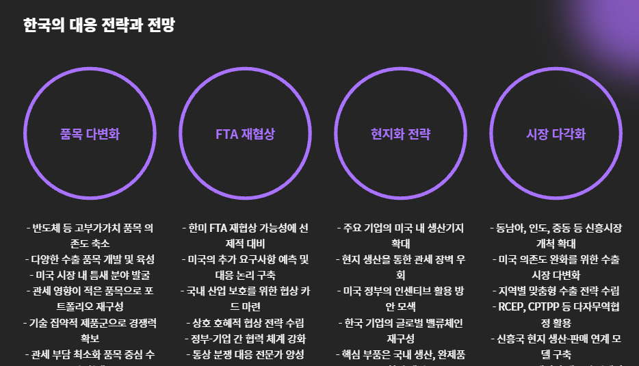 그래서 정부는 신속히 양자 관세 협의 채널을 가동하고 있고, 기업들도 대미 수출 전략을 전면 수정하는 중입니다.