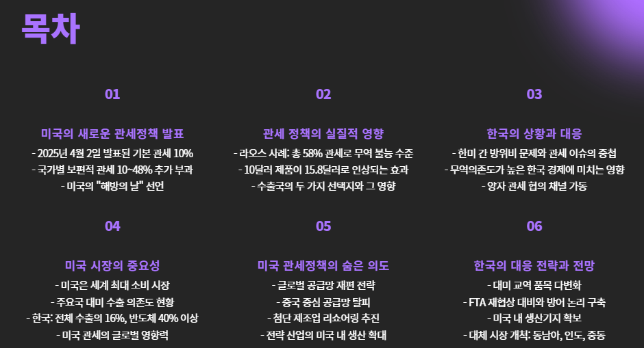 미국의 이번 관세 정책은 단순한 보호무역주의 부활이 아니라, 글로벌 경제질서 재편의 신호탄일 가능성이 큽니다.