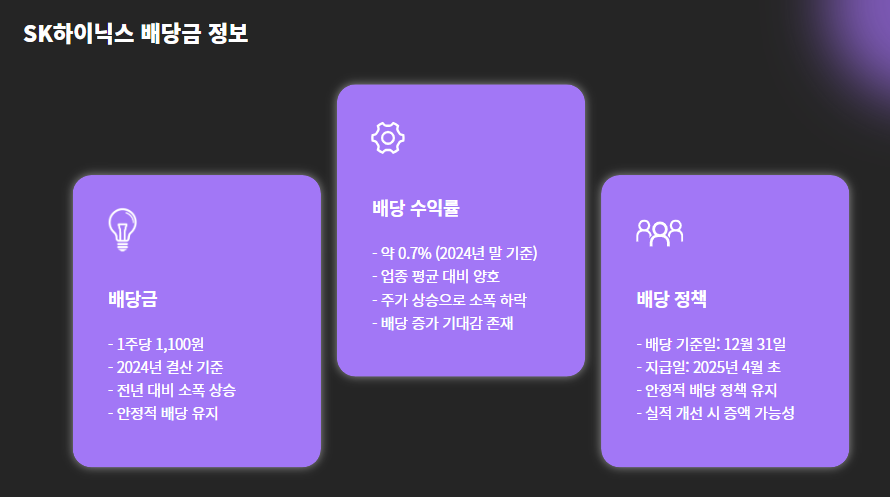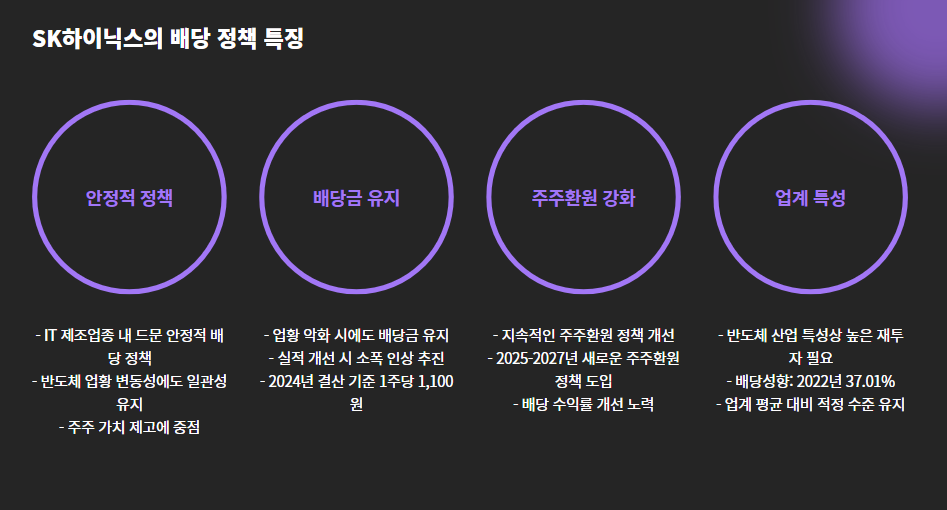 SK하이닉스는 반도체 업황의 변동성에도 불구하고, 지속적으로 배당금을 유지하거나 소폭 인상하며 주주환원정책을 강화하는 추세입니다.