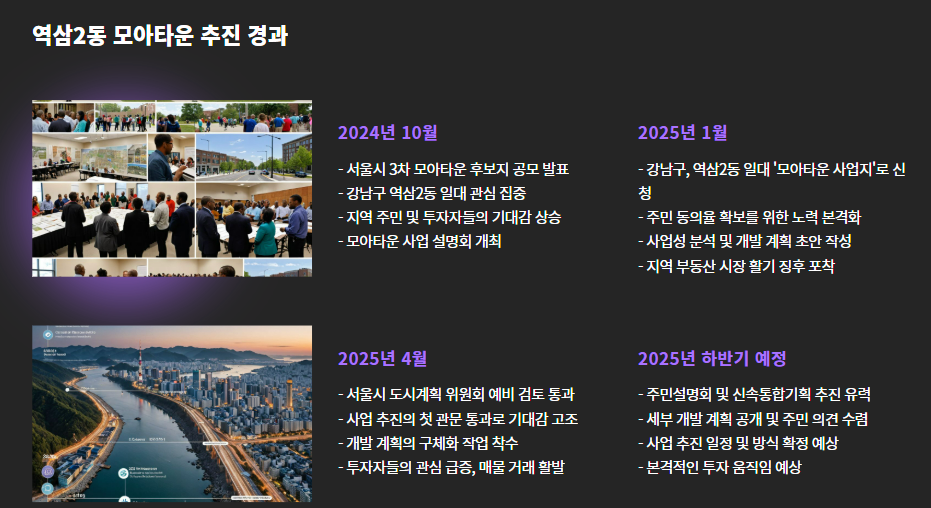 | 2025년 1월 | 강남구, 역삼2동 일대 ‘모아타운 사업지’로 서울시에 신청 |