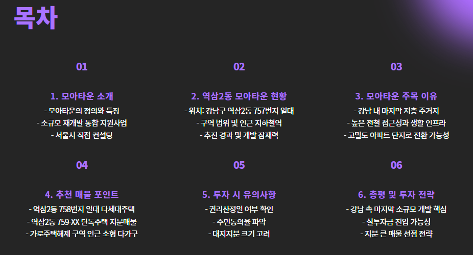 역삼2동 모아타운은 '강남 속 마지막 소규모 개발의 핵심'이 될 가능성이 높습니다.