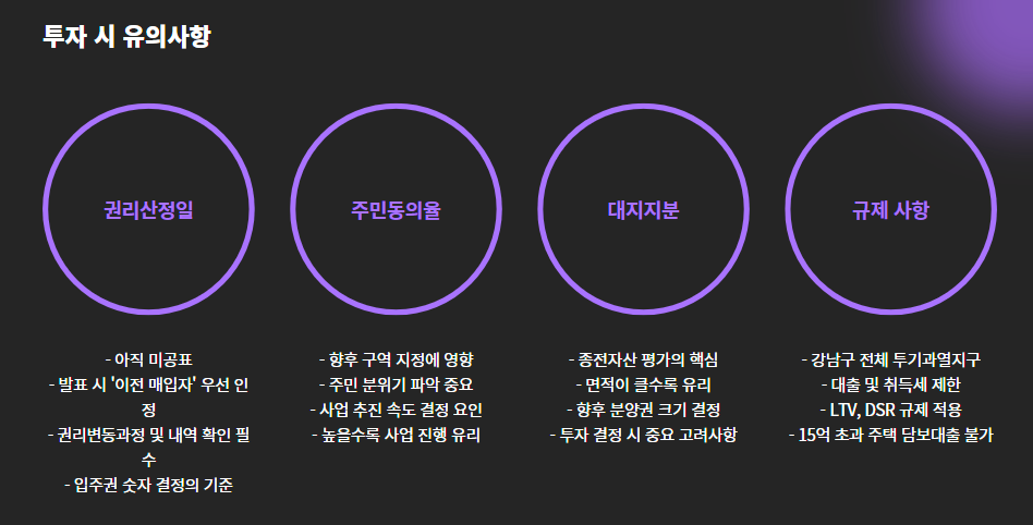 | 대지지분 크기 | 종전자산 평가의 핵심, 면적 클수록 유리 |