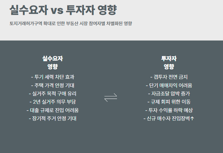 | 실수요자 | 투기 세력 차단, 상대적 가격 안정 기대 |