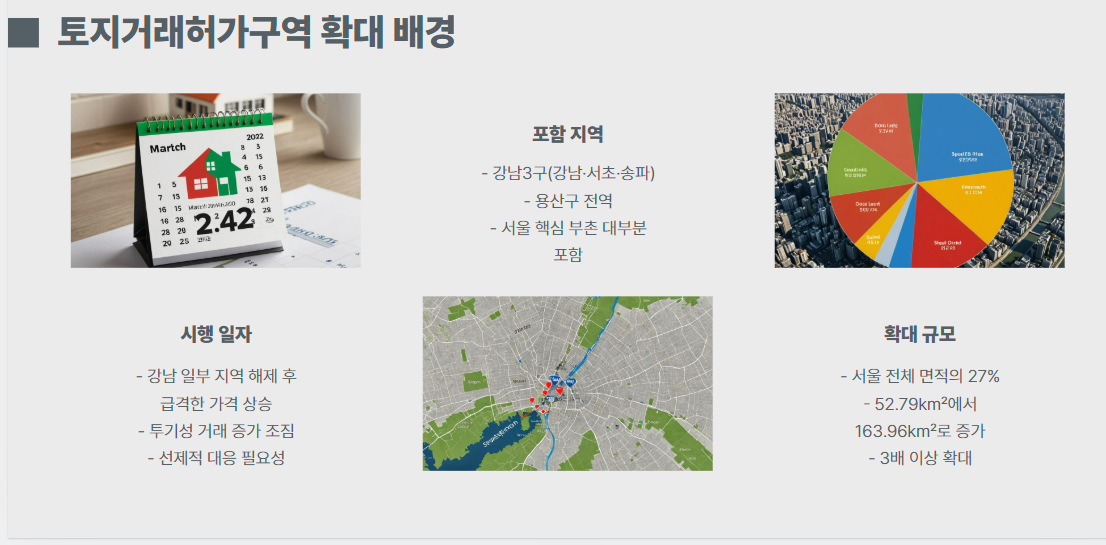 | 2024년 3월 19일 | 강남3구 및 용산구 전역 토허구역 재지정 발표 |
