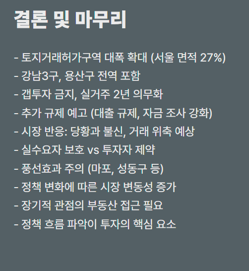 이 조치로 실수요자는 보호되지만, 단기 수익을 노리는 투자자들은 큰 제약을 받게 됩니다.