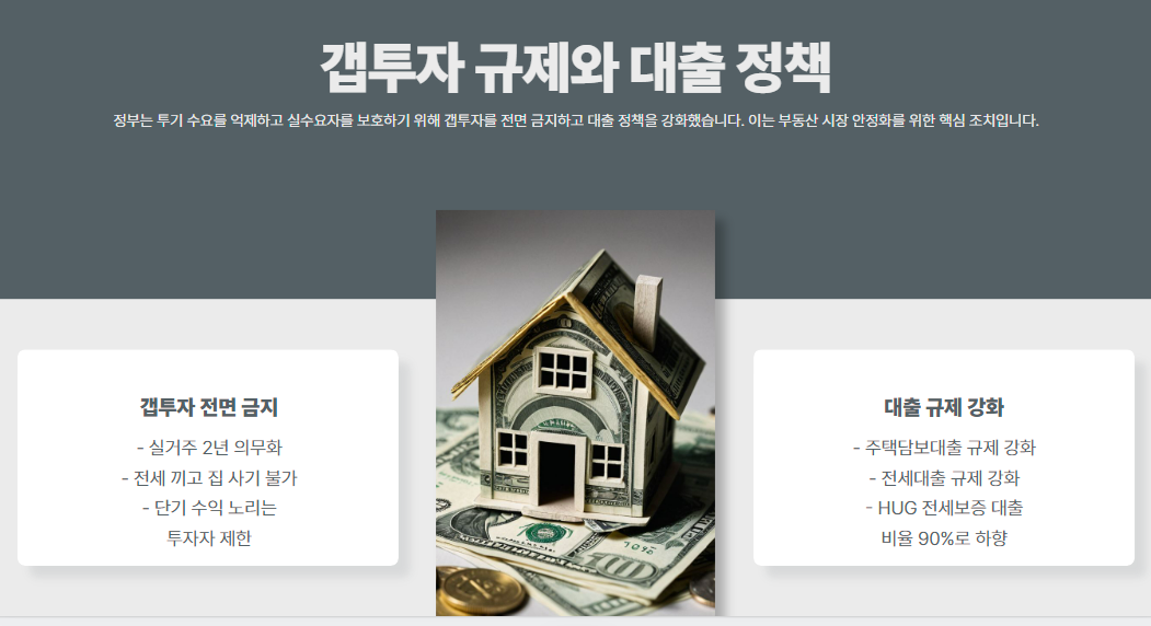 즉, 전세 세입자를 끼고 집을 사는 ‘갭투자’는 전면 금지되는 거죠.