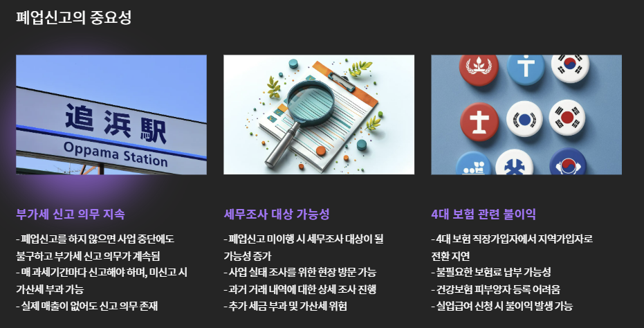 이 글을 참고하셔서 불필요한 가산세, 고지서, 세무조사 없이 깔끔하게 폐업 절차를 마무리해보시기 바랍니다.