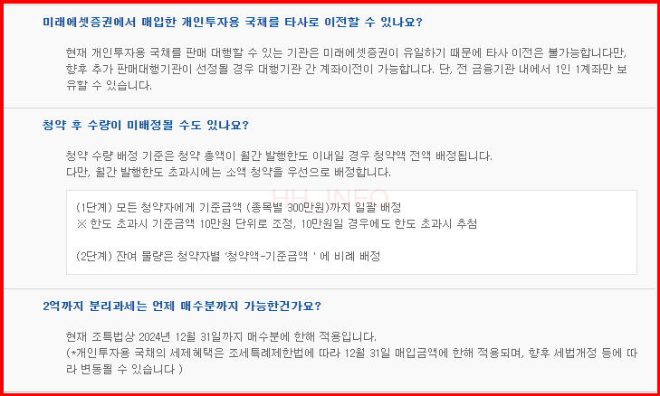 6월 13일부터 17일까지는 국채 판매 및 배정이 이루어집니다. 개인 투자자들은 이 기간 동안 미래에셋증권을 통해 국채를 청약할 수 있습니다. 청약 신청 후에는 배정 과정을 통해 실제로 국채를 받게 됩니다.