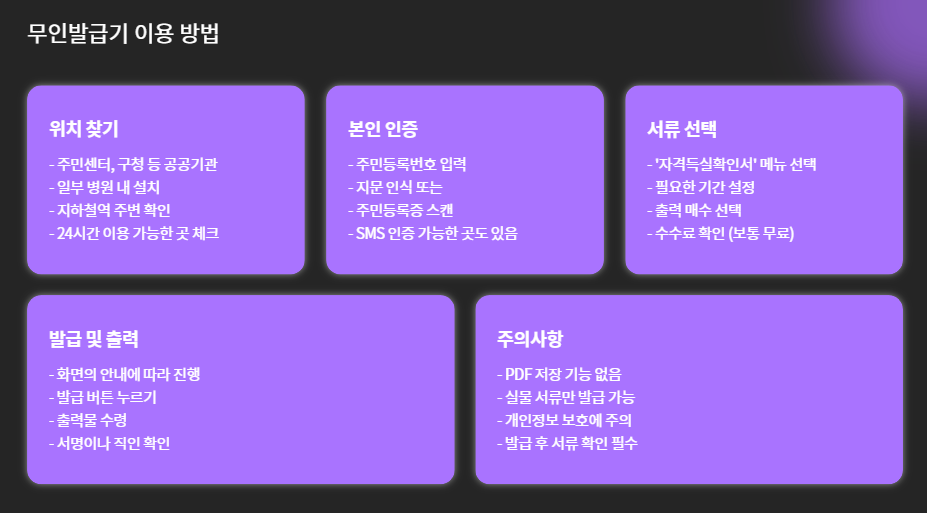 | 무인발급기 | 주민센터, 공단지사 등 | ❌ 일부만 인증 |
