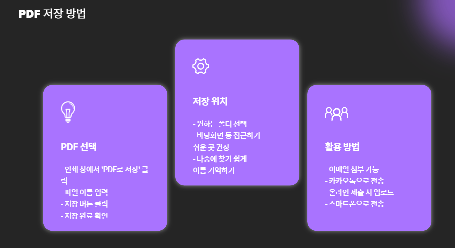 - 이메일 첨부, 카카오톡 전송 등 활용 가능