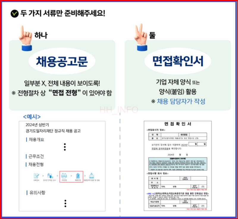 면접수당을 받기 위해서는 채용 공고문과 면접 확인서가 필요합니다.