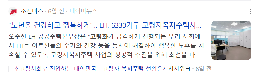 고령자 복지주택은 한국토지주택공사(LH)에서 제공하는 주택지원 정책의 일환으로, 일반 실버타운과는 달리 저렴한 월세만으로 주거와 건강, 의료 케어 같은 다양한 복지 서비스를 제공합니다. 나라에서 운영하는 시설이라 관리가 잘 되어 있고, 입주자들의 만족도도 높습니다.