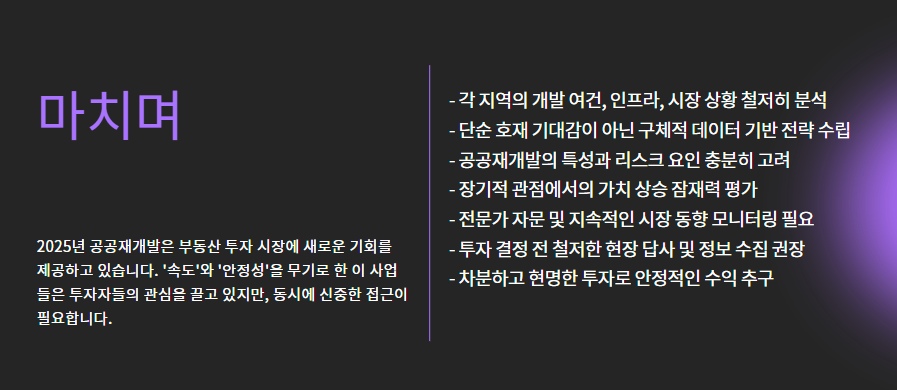 2025년 기준 공공재개발은 '속도'와 '안정성'을 무기로 부동산 투자 시장에서 매력적인 기회를 제공하고 있습니다.