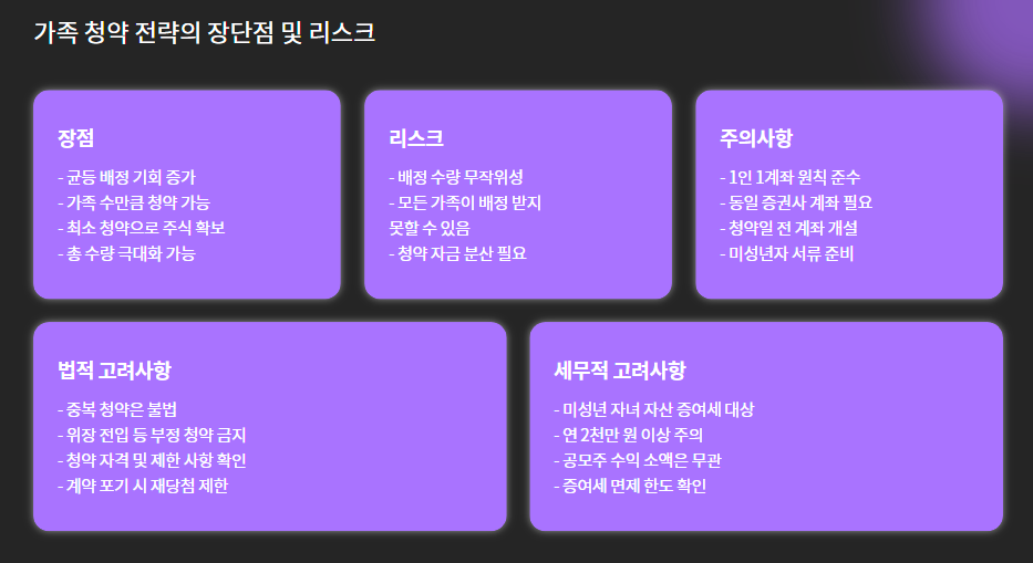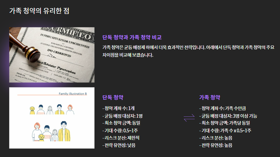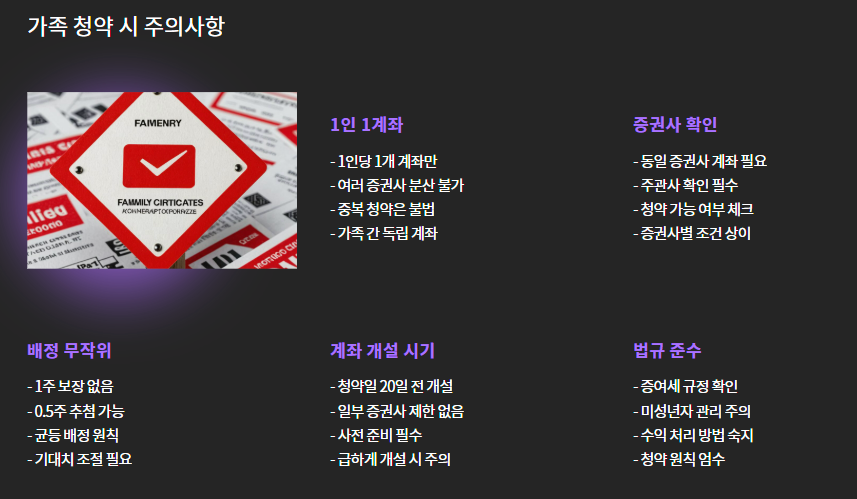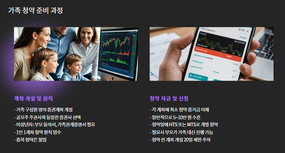 - 가족 전원이 동일 증권사 계좌를 준비해야 청약 가능