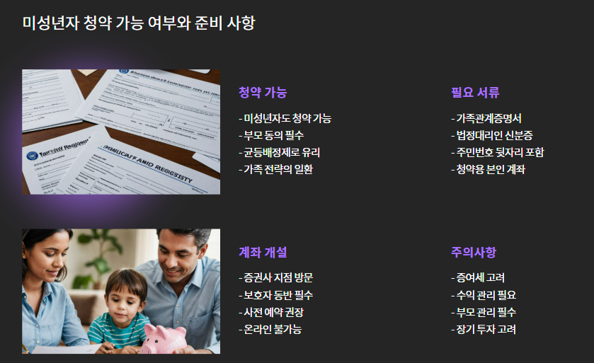 | 청약용 계좌 | 미성년자 본인 명의 필수 |