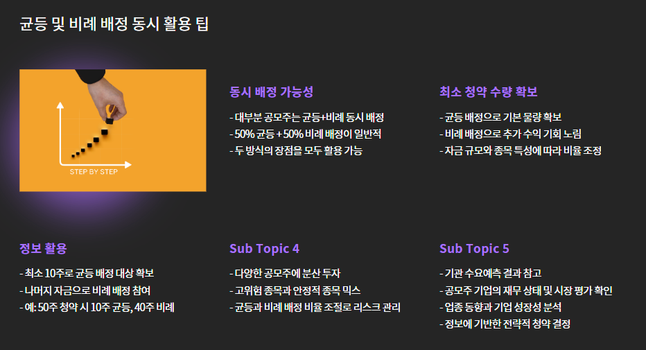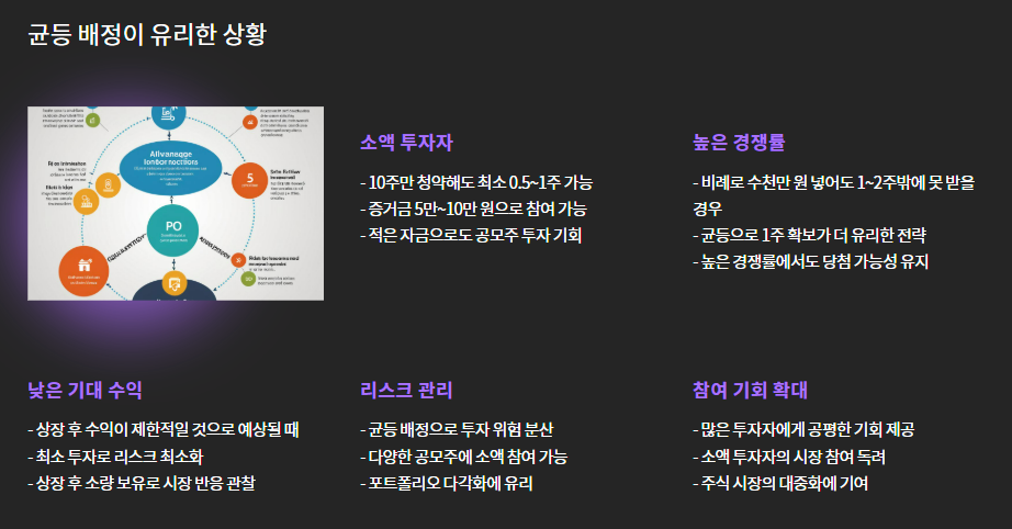 💡 현재 대부분 공모주는 50% 균등 + 50% 비례 배정 방식 병행 중입니다.