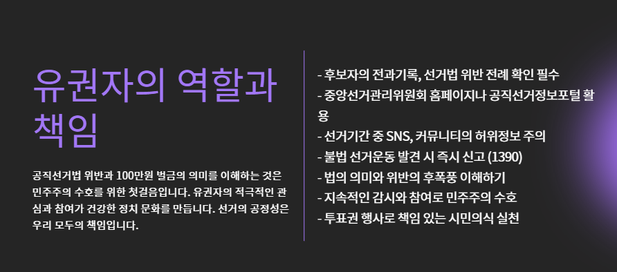 선거철마다 반복되는 법 위반과 유권자의 무관심이 반복된다면, 민주주의의 기반도 흔들릴 수 있습니다.