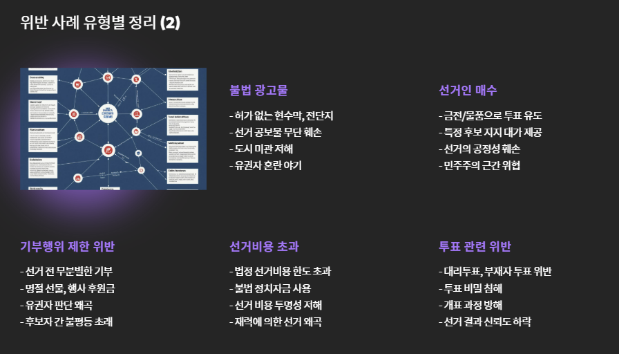 | 금품 제공 및 향응 | 현금, 식사, 선물 등 제공 시 선거법 위반 | 2014년 지방선거 당시 식사 제공으로 기소된 지방의원 |