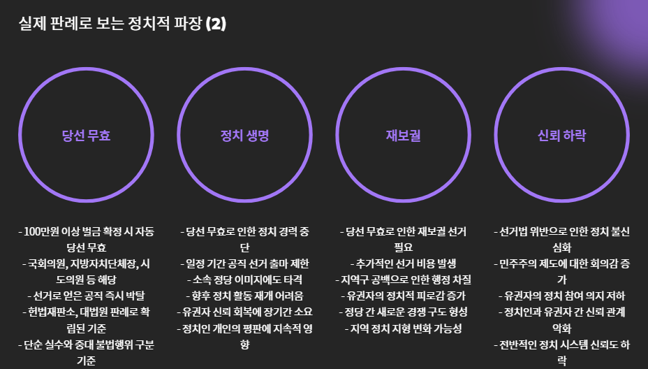 당선 무효가 확정되면, 선거로 얻은 공직이 박탈되고 일정 기간 출마 제한 - 정당의 이미지 타격