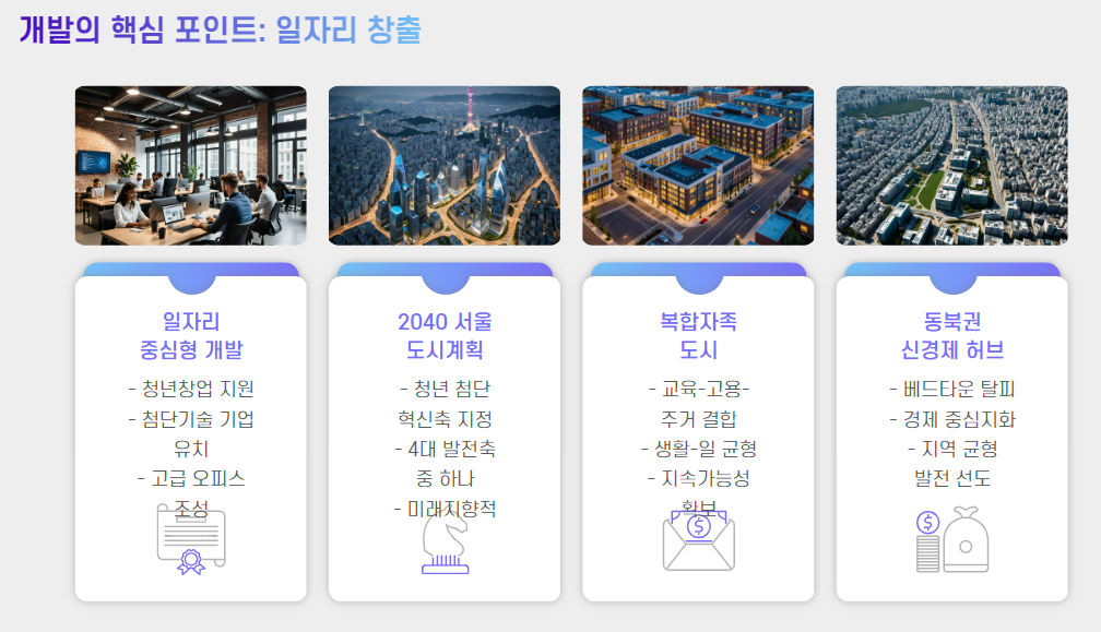 💡 단순히 ‘사는 곳’을 넘어 ‘사는 곳 + 일하는 곳’이 공존하는 동북권 신경제 허브가 목표입니다.