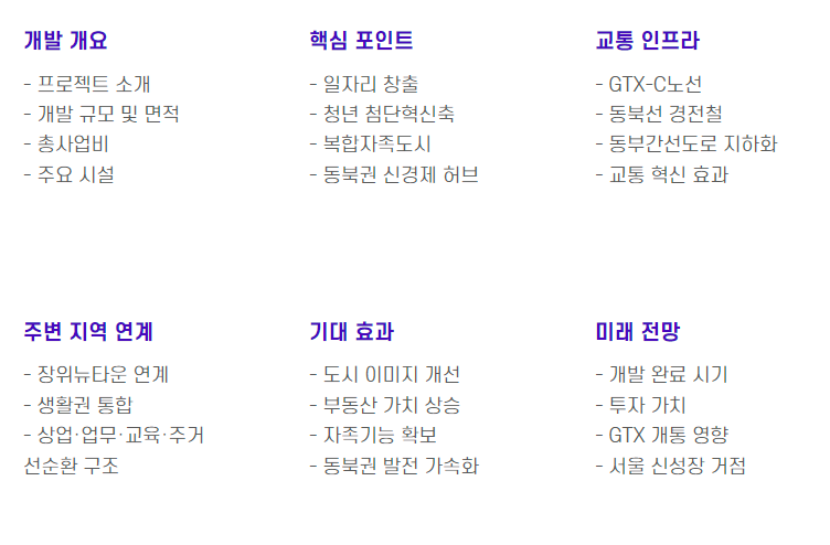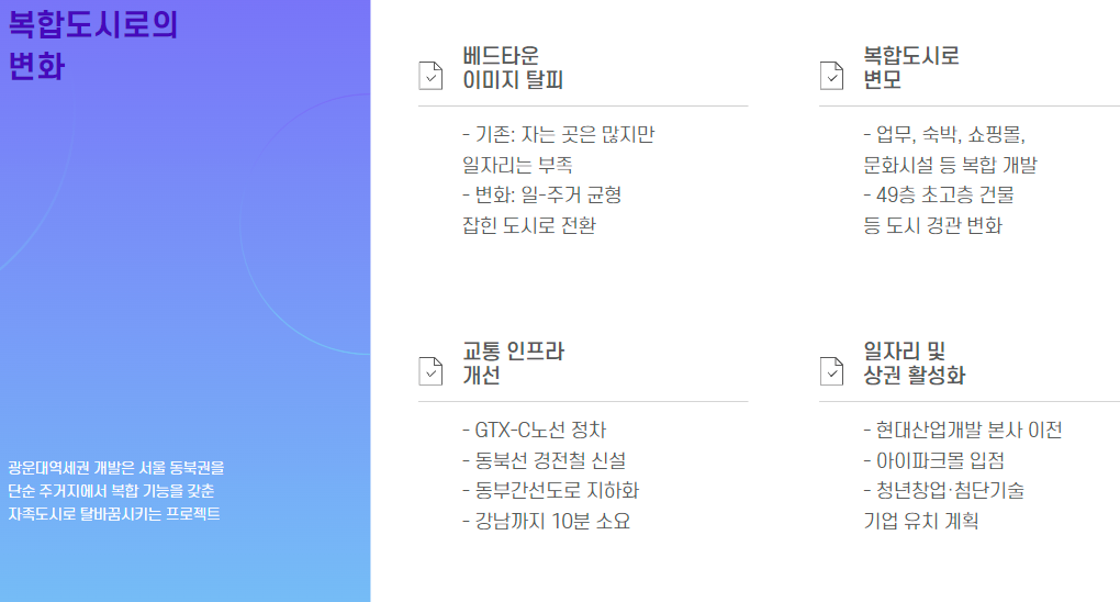 서울 동북권을 21세기형 복합자족도시로 탈바꿈시키려는 상징적 프로젝트입니다.