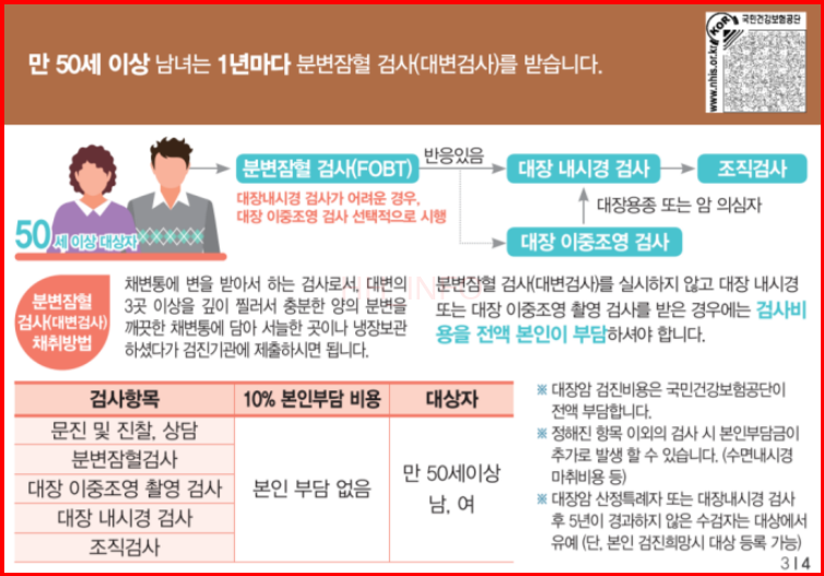 - 대장암 검사: 만 50세 이상은 대장 내시경 검사를 무료로 받을 수 있습니다.