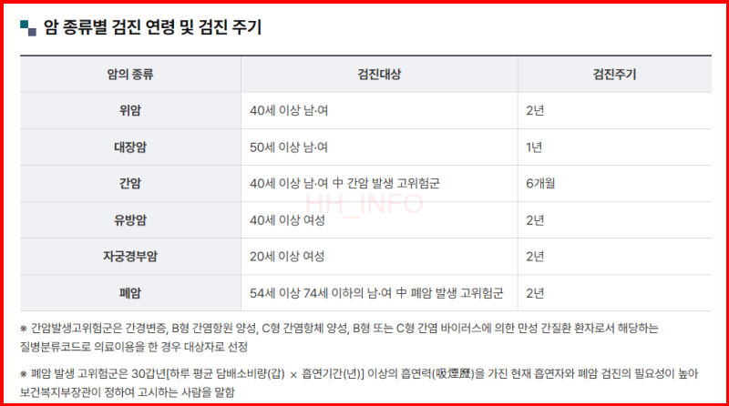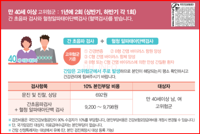 - 간암 검사: 만 40세 이상의 고위험군은 피검사와 간 초음파를 통해 검사를 진행할 수 있습니다.