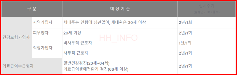 - 직장가입자 (사무직): 2년에 1회