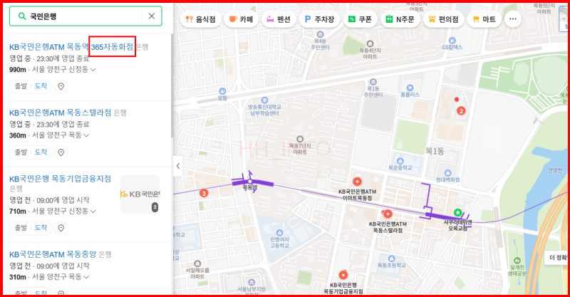 국민은행 ATM기기를 찾으려면 네이버 지도나 카카오맵 같은 지도 어플리케이션을 이용하여 '국민은행 ATM' 혹은 '365자동화점'을 검색하면 됩니다. 위치 정보와 운영시간을 함께 확인할 수 있어 매우 편리합니다.