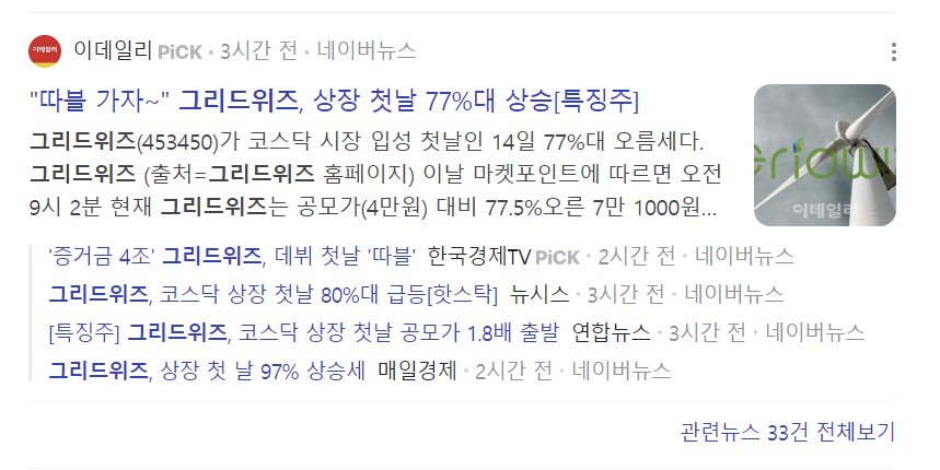 "따블 가자~" 그리드위즈, 상장 첫날 77%대 상승[특징주]