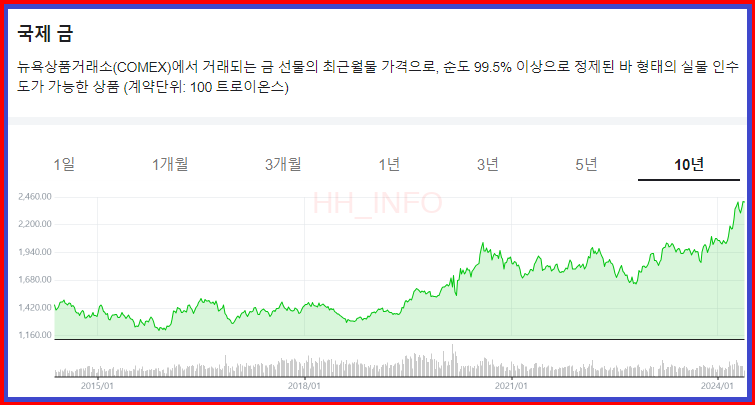 - 안전성: 금은 역사적으로 안전자산으로 여겨져 왔습니다. 경제 불확실성이 클 때 금값이 오르는 경향이 있어, 자산을 보호하는 데 유리합니다.