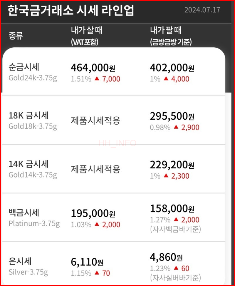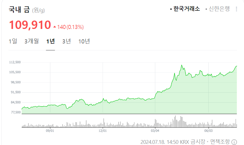 2024년 7월 16일 기준 한국 금거래소 시세:
