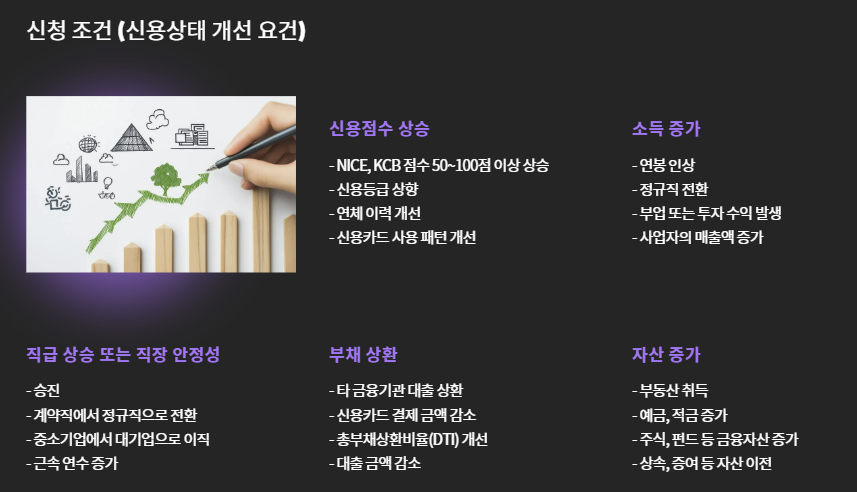 - 소득, 신용, 직장, 자산 등 객관적 개선 근거가 있을 때만 효과적입니다.
