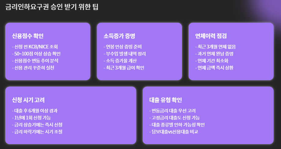 - 금리 인하 요구는 통상 1년 1회 가능 (은행별 상이)