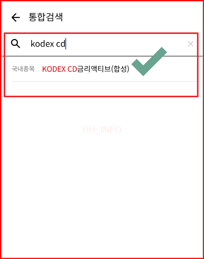 검색 결과에서 'Kodex CD 금리 액티브(합성)'을 선택합니다.