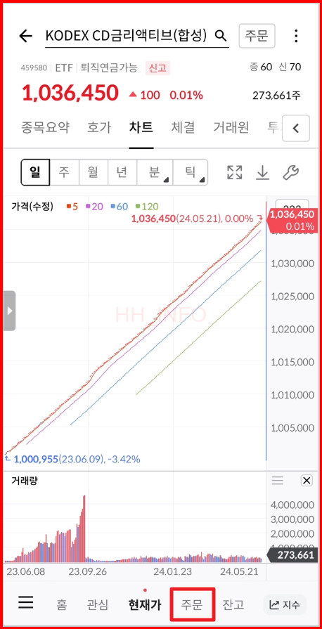 금리형 ETF는 주식 매수와 동일한 절차로 가입할 수 있습니다. 증권사 홈페이지에서 검색하여 주문을 진행하면 됩니다.