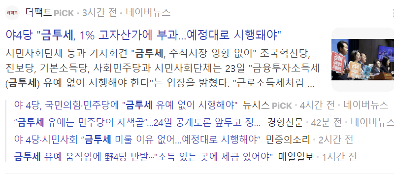 - 찬성(이재명): 일시적 완화를 고려하지만, 금투세는 필요하며 절대 폐지할 수 없다는 입장.