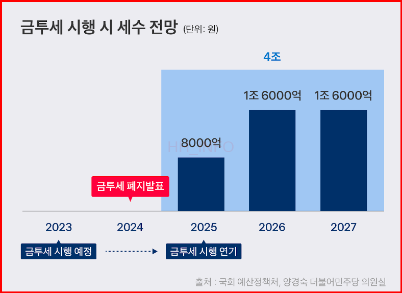 금투세는 2025년부터 시행될 예정이지만, 여전히 정치권에서 찬반 논의가 활발히 진행 중이며, 이에 따른 투자자들의 피해를 최소화할 수 있는 방안이 필요해 보입니다.