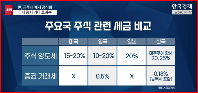 - 반대(한동훈): 금투세 도입 자체가 주식 시장에 부정적인 영향을 미친다고 주장.