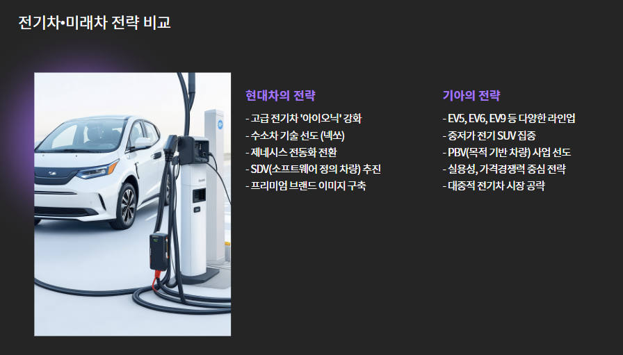 5️⃣ 전기차·미래차 전략 비교