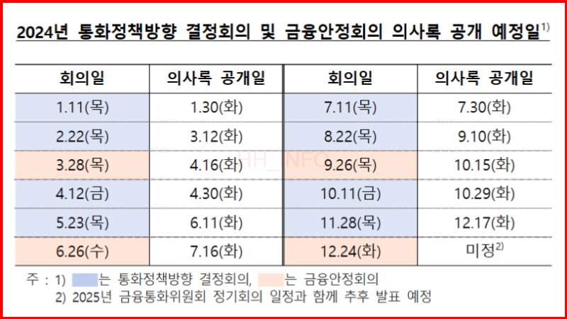 한국은행 기준금리 결정과 발표 일정