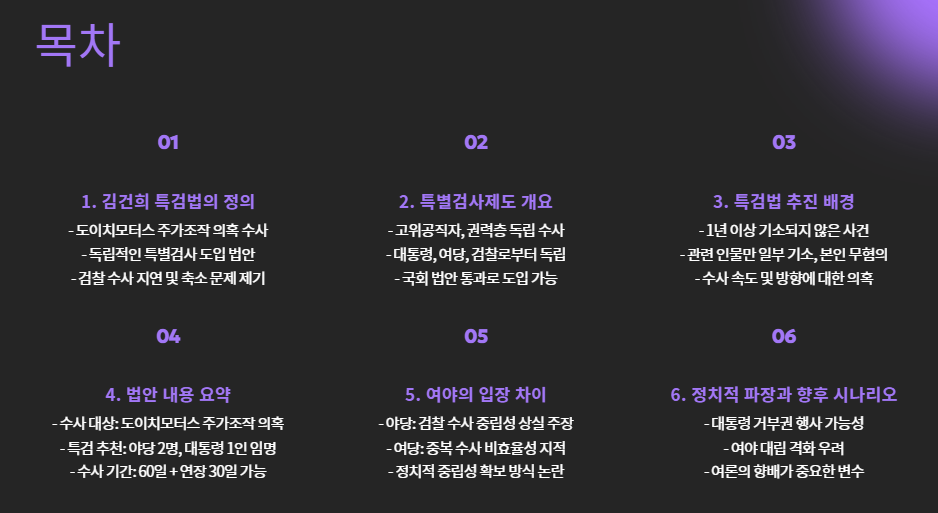해당 법안은 주로 더불어민주당을 중심으로 추진되고 있으며, 기존 검찰의 수사가 지연되거나 축소되고 있다는 문제의식에서 출발했습니다.