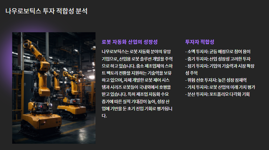 나우로보틱스는 로봇 자동화라는 성장 산업에 기반을 둔 유망 기업이며,
