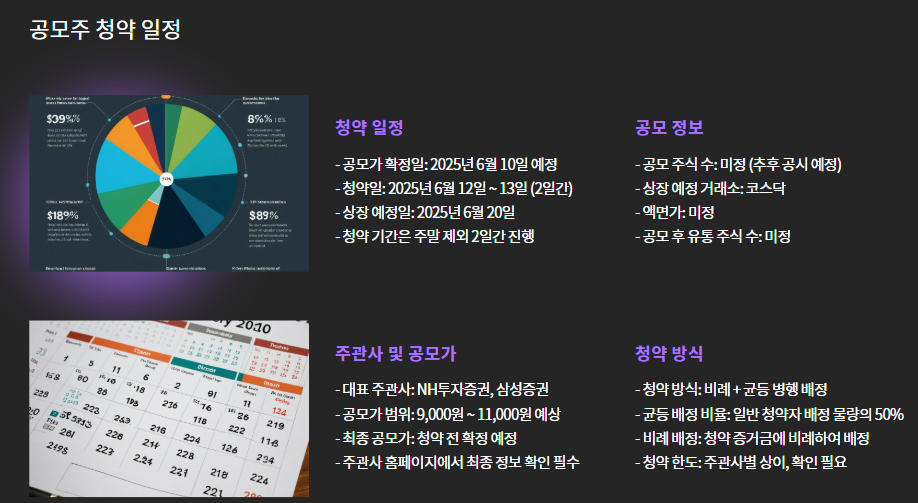 | 공모가 확정일 | 2025년 6월 10일 예정 |