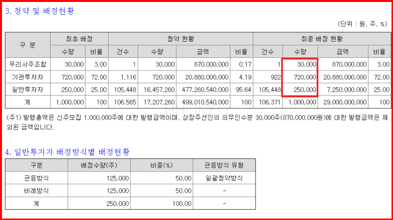 케이쓰리아이는 확장현실(XR) 솔루션 전문 기업으로, 이번 공모가로 15,500원이 설정되었습니다. 공모주는 기관투자자 105만 주, 일반투자자 35만 주로 총 140만 주가 모집되었습니다. 균등 비례 배정에서 각각 17만 5천 주씩 배정되었으며, 청약에 참여한 투자자들은 대부분 2주를 확보할 수 있었습니다.