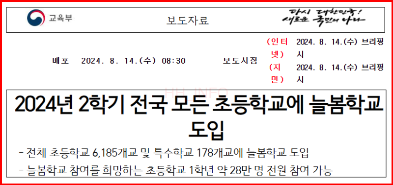 늘봄학교는 초등학교 저학년 자녀를 둔 맞벌이 가정에게 큰 도움이 되는 프로그램입니다. 특히 2024년 2학기부터 모든 초등학교에서 운영되며, 2025년에는 1~2학년까지 확대될 예정이어서 앞으로 더 많은 가정이 혜택을 받을 수 있습니다. 방학 중 운영 여부나 급식 제공 등 일부 개선이 필요하지만, 전반적으로 매우 긍정적인 변화로 평가할 수 있습니다.