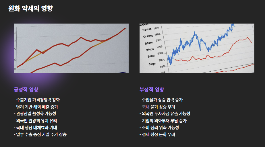 - 수출기업에 유리: 달러로 수익을 얻는 기업들은 환차익 기대 가능